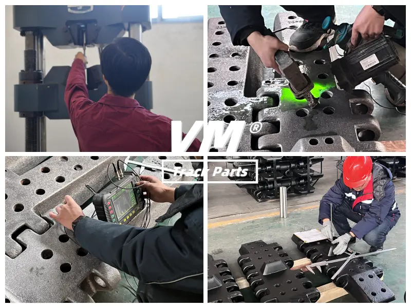 Common signs of wear include: Visible Cracks or Deformation, especially in track shoes and rollers. Uneven Wear Patterns: On rollers, idlers, or sprockets. Excessive Track Slack: Indicating stretched chains or worn bushings. Regular measurements against OEM wear limits help determine when parts need replacement.